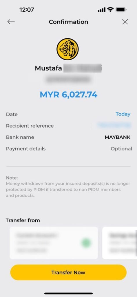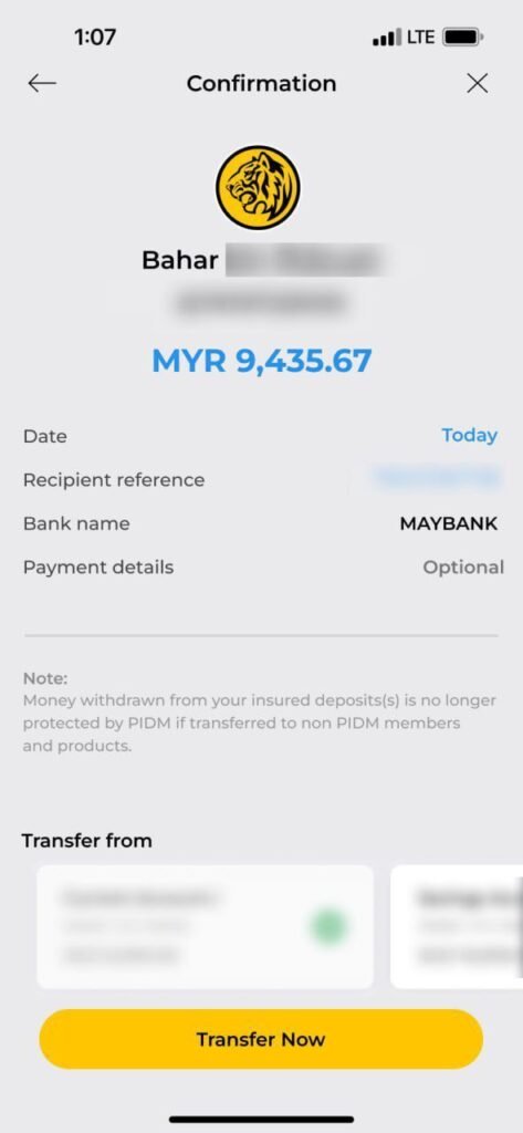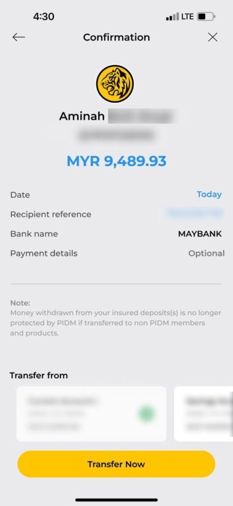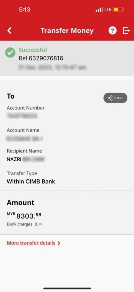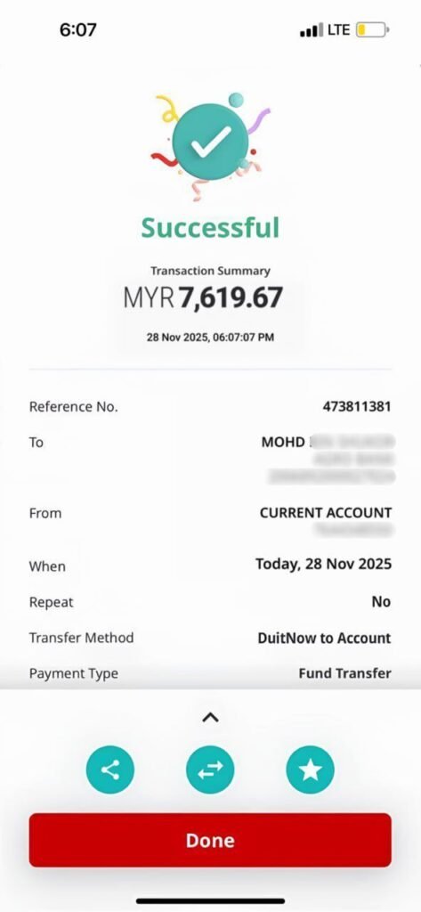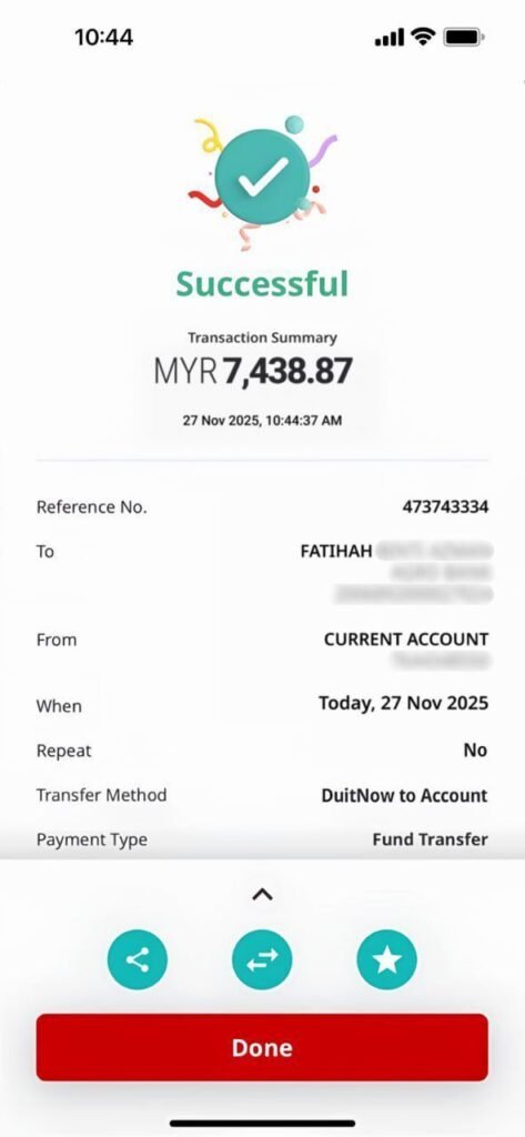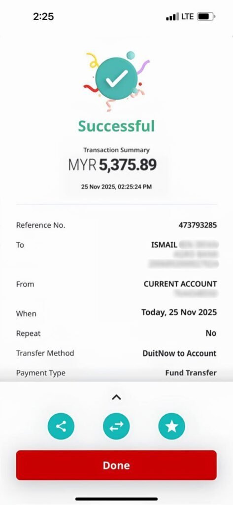 ada duit masuk akaun
